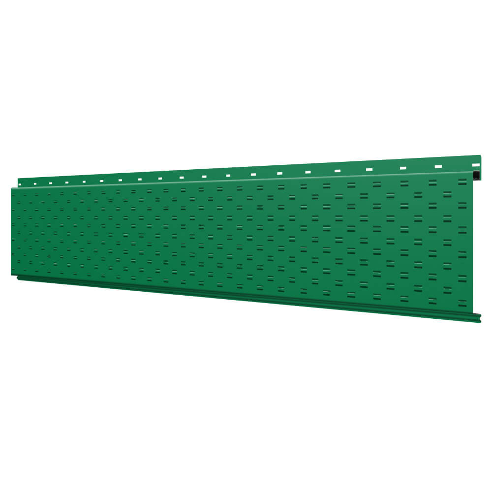 Линеарная потолочно-стеновая панель с ПЕРФОРАЦИЕЙ для вентиляции цвет RAL6029 Зеленая Мята применяется в качестве софитов для подшивы крыши, наружной и внутренней отделки потолков, стен, фронтонов фасада дома в Махачкале.
