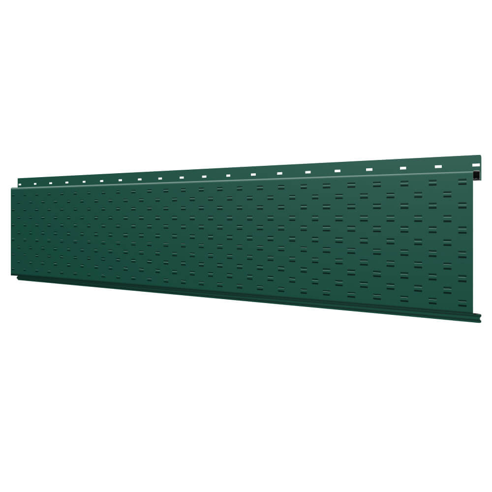 Линеарная потолочно-стеновая панель с ПЕРФОРАЦИЕЙ для вентиляции цвет RAL6005 Зеленый Мох применяется в качестве софитов для подшивы крыши, наружной и внутренней отделки потолков, стен, фронтонов фасада дома в Махачкале.