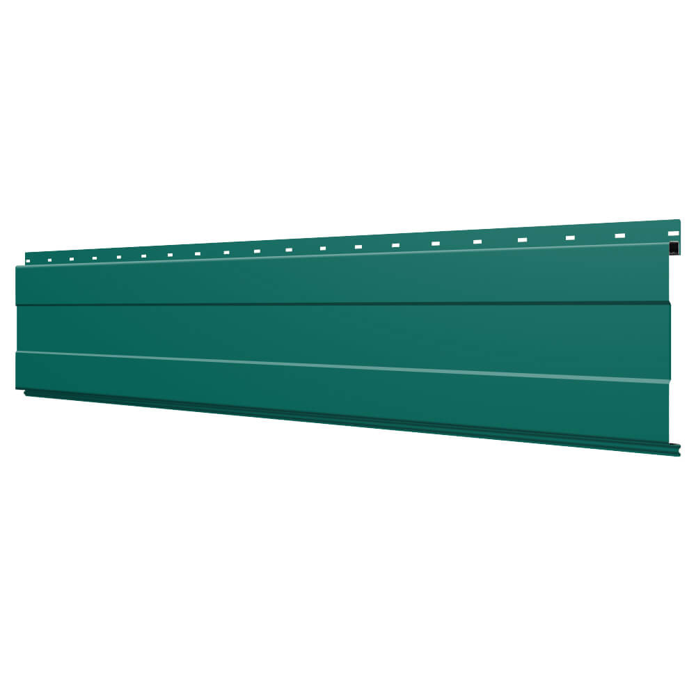 Линеарная потолочно-стеновая панель с ПОЛОСОЙ усиленная цвет RAL6026 Опал применяется в качестве софитов для подшивы крыши, наружной и внутренней отделки потолков, стен, фронтонов фасада дома в Махачкале.