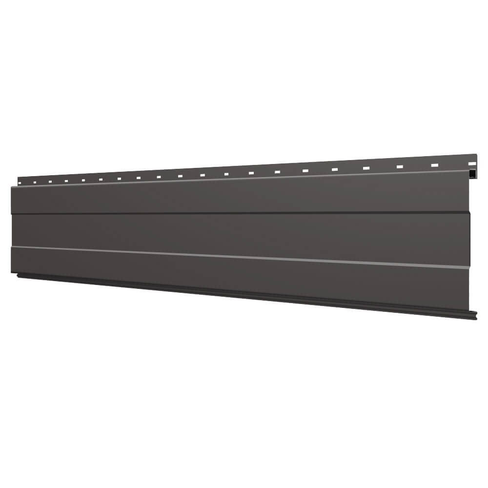 Линеарная потолочно-стеновая панель с ПОЛОСОЙ усиленная цвет RAL8019 Темный Шоколад применяется в качестве софитов для подшивы крыши, наружной и внутренней отделки потолков, стен, фронтонов фасада дома в Махачкале.