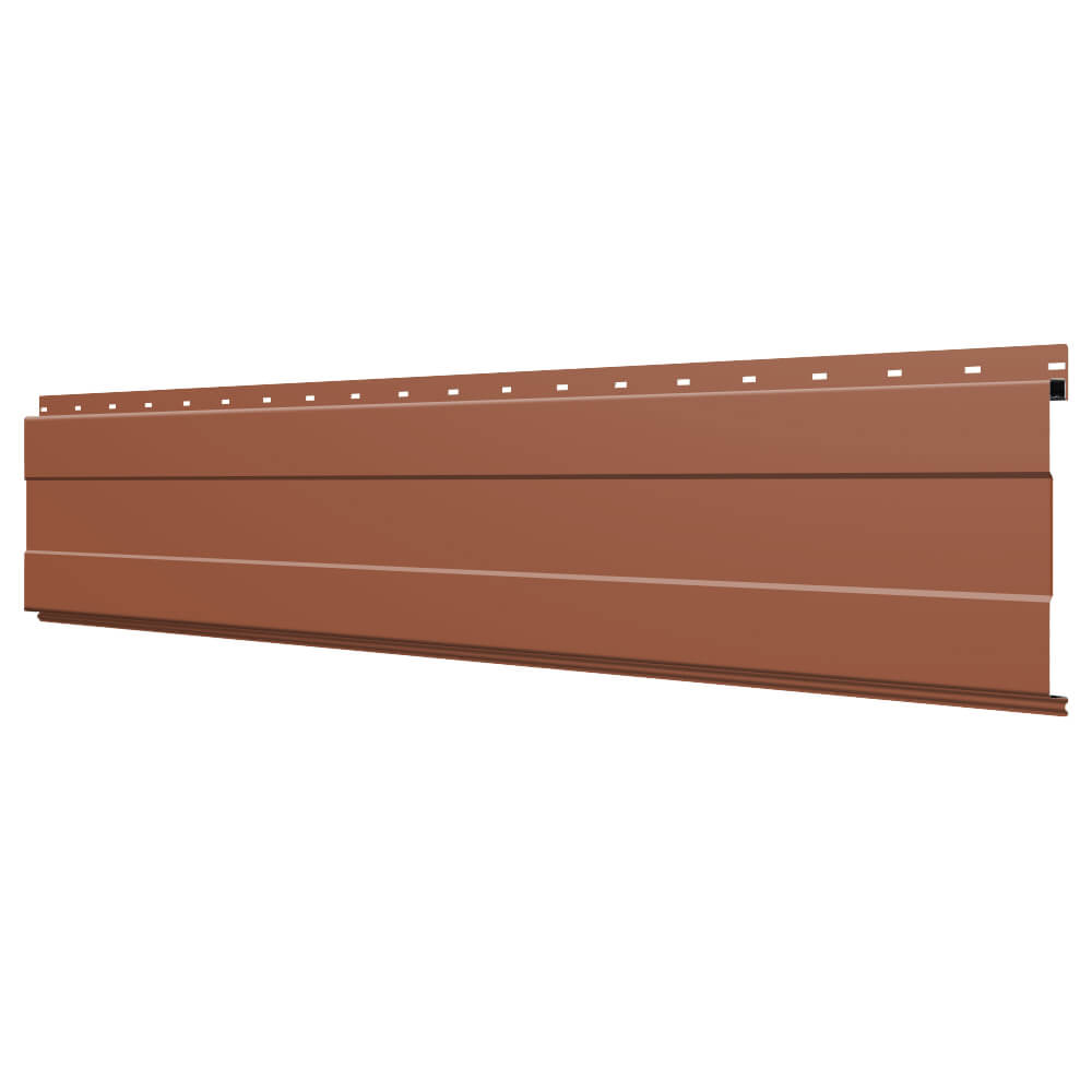 Линеарная потолочно-стеновая панель с ПОЛОСОЙ усиленная цвет RAL8004 Терракотовый применяется в качестве софитов для подшивы крыши, наружной и внутренней отделки потолков, стен, фронтонов фасада дома в Махачкале.