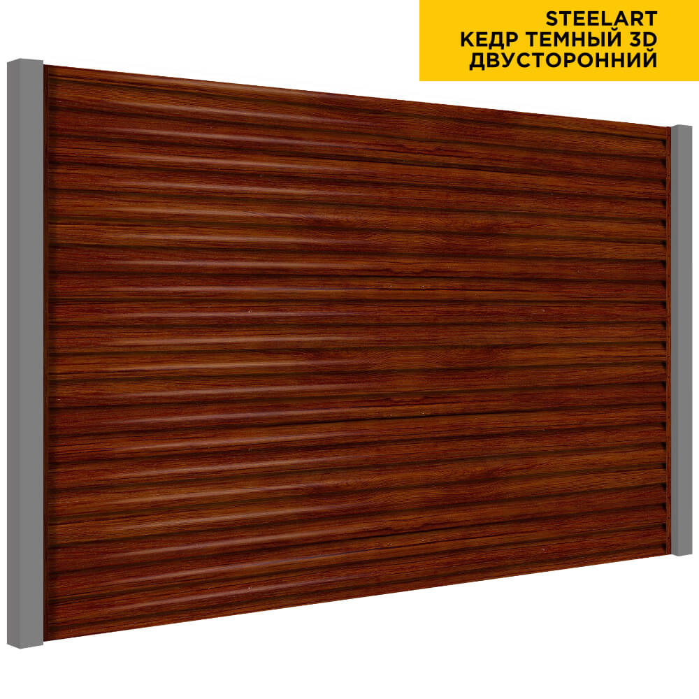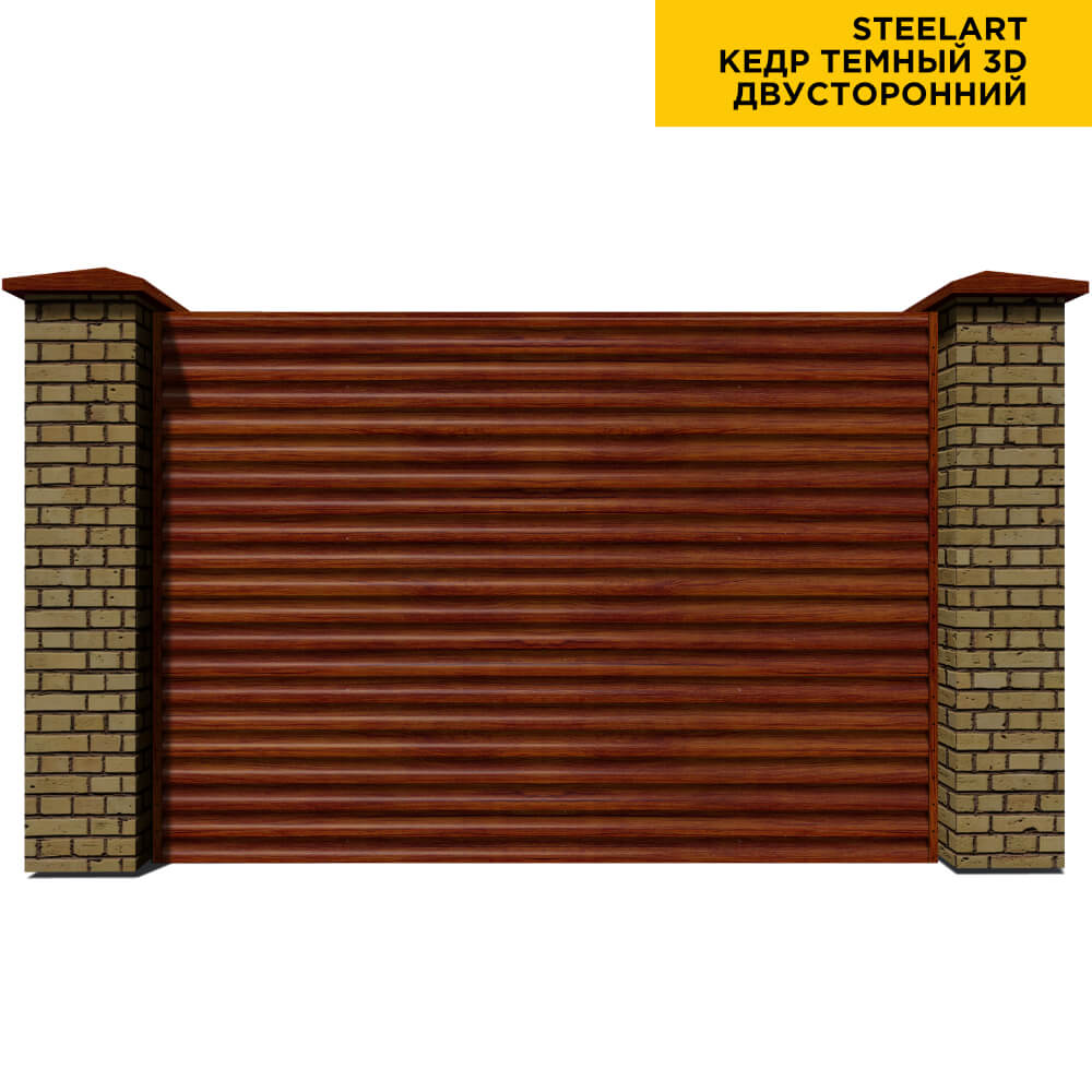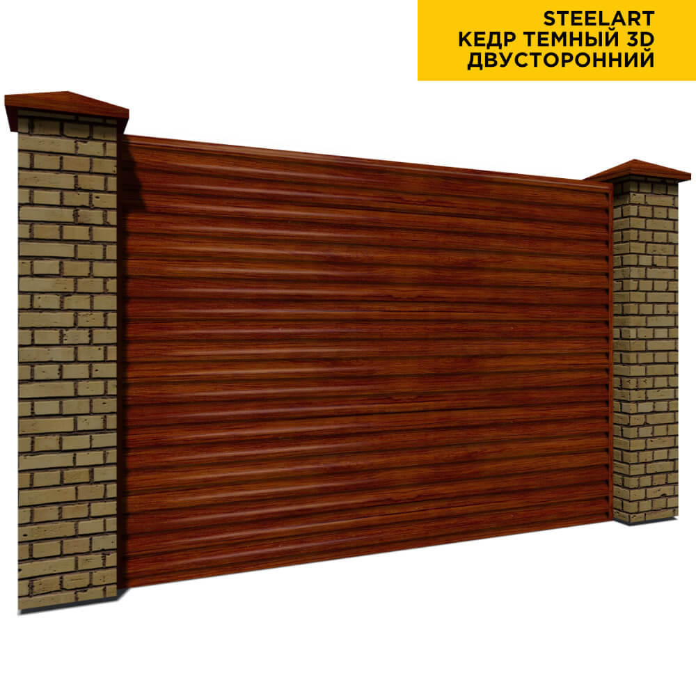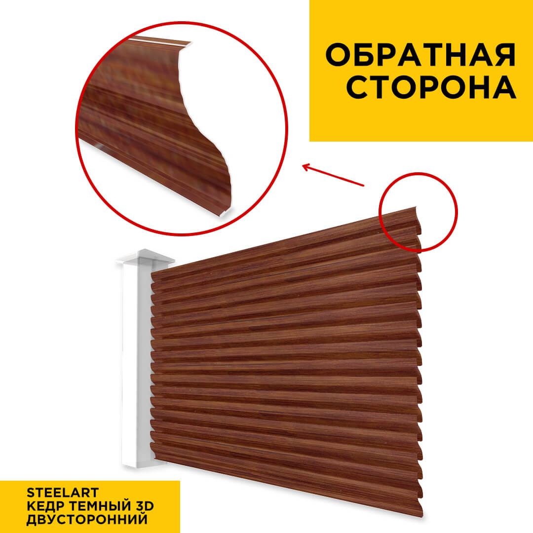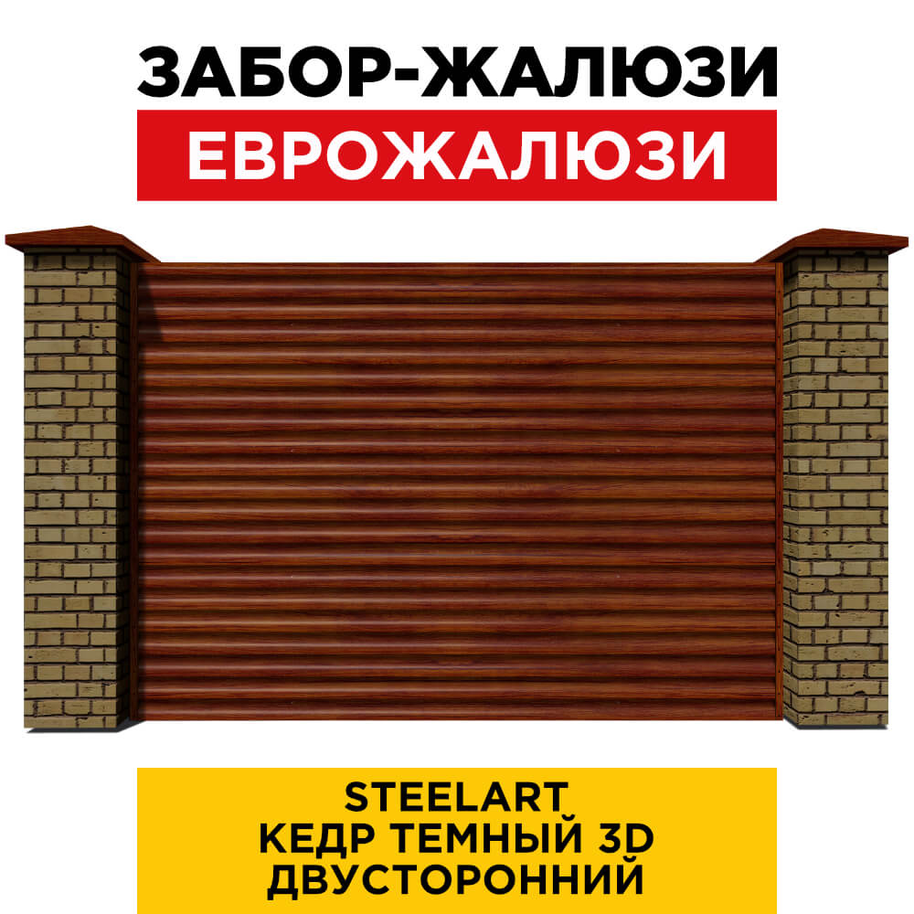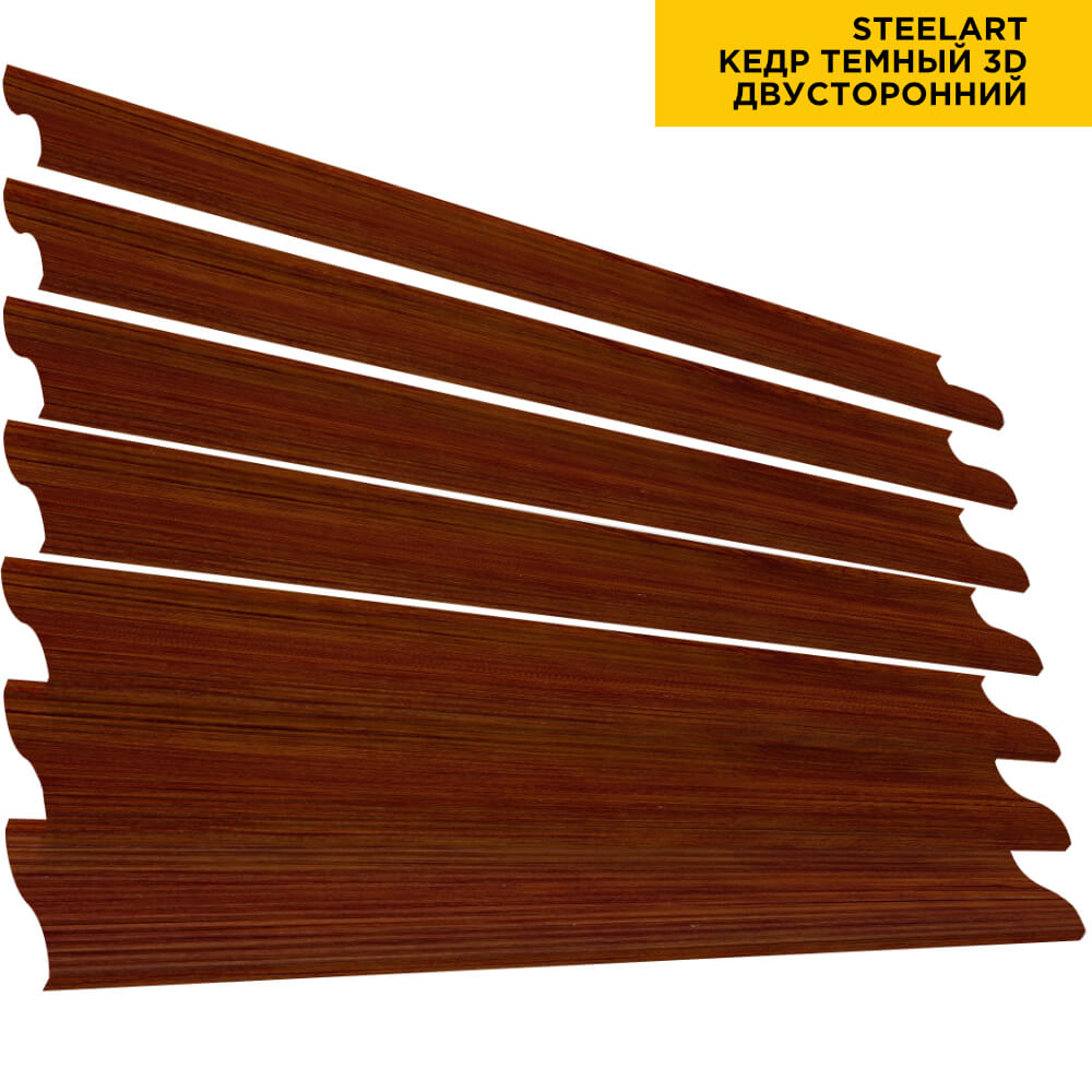 Ламель Еврожалюзи металлическая S-образная, цвет под дерево Кедр Темный 3D SteelArt Россия двухстороннее покрытие, длина любая кратно 1см под заказ - для забора-жалюзи, беседки, перголы в Махачкале