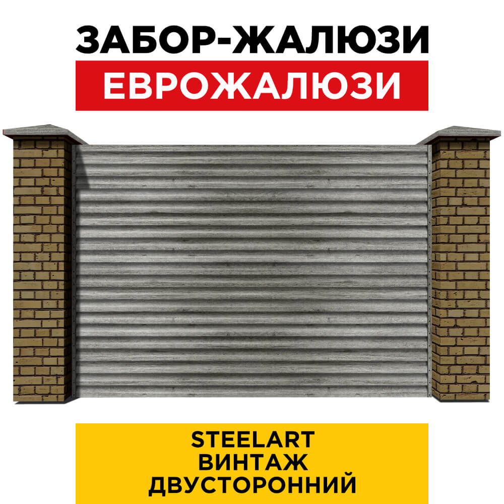 Ламель Еврожалюзи металлическая S-образная, цвет под дерево Винтаж SteelArt Россия двухстороннее покрытие, длина любая кратно 1см под заказ - для забора-жалюзи, беседки, перголы в Махачкале.