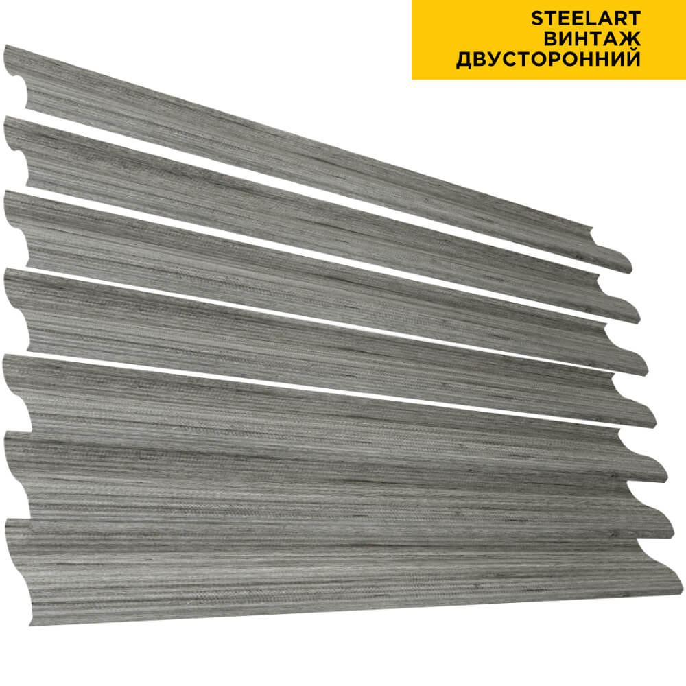 Ламель Еврожалюзи металлическая S-образная, цвет под дерево Винтаж SteelArt Россия двухстороннее покрытие, длина любая кратно 1см под заказ - для забора-жалюзи, беседки, перголы в Махачкале