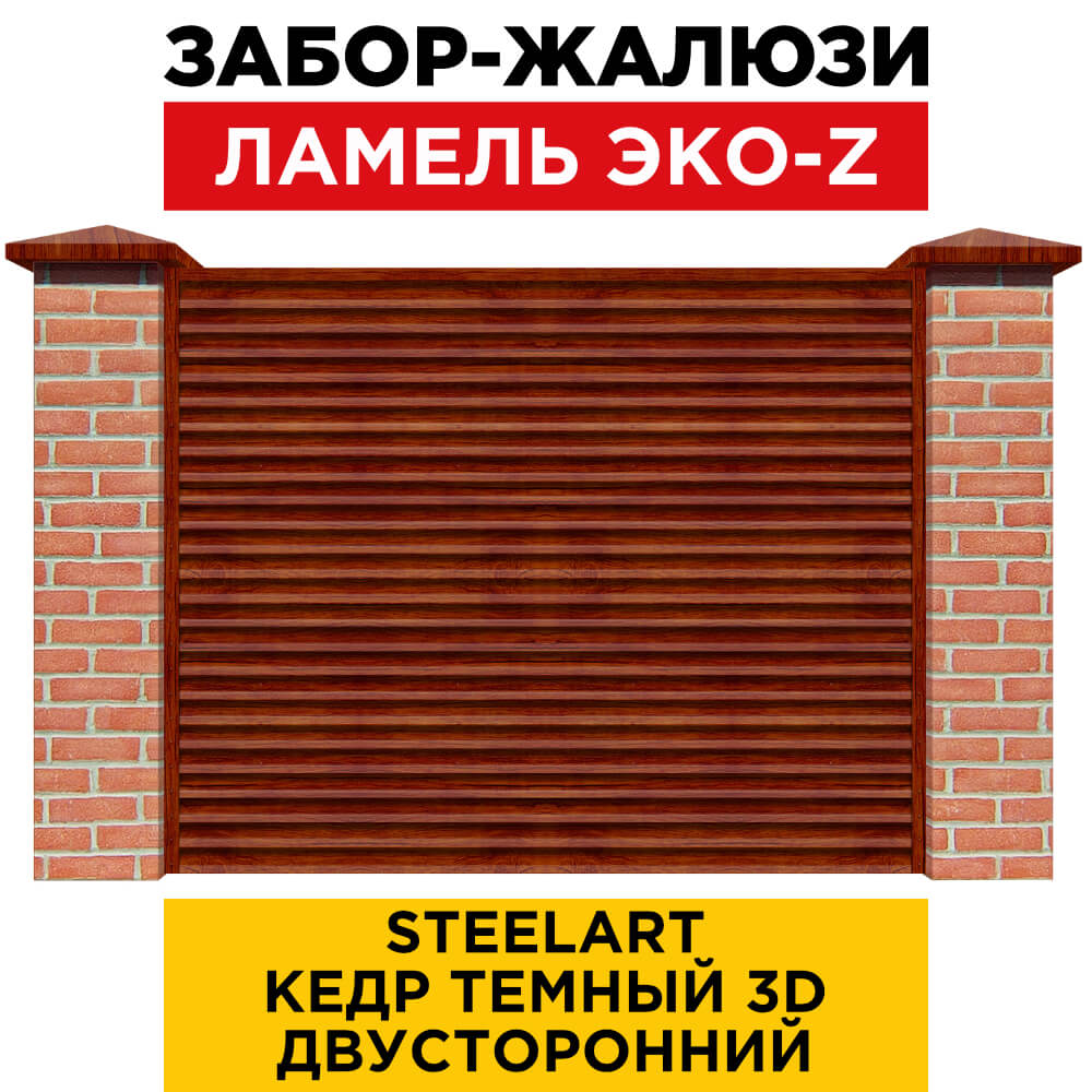 Ламель металлическая Z-образная простая ЭКО-Z, цвет под дерево Кедр Темный 3D SteelArt двухстороннее покрытие, длина любая кратно 1см под заказ - для забора-жалюзи, беседки, перголы в Махачкале.